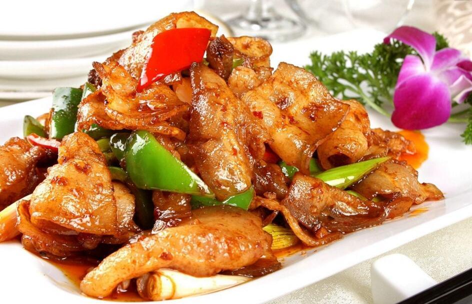 3、九成熟肉切片,锅内放适量油,爆炒,爆炒至肉卷曲,让肥油出来。