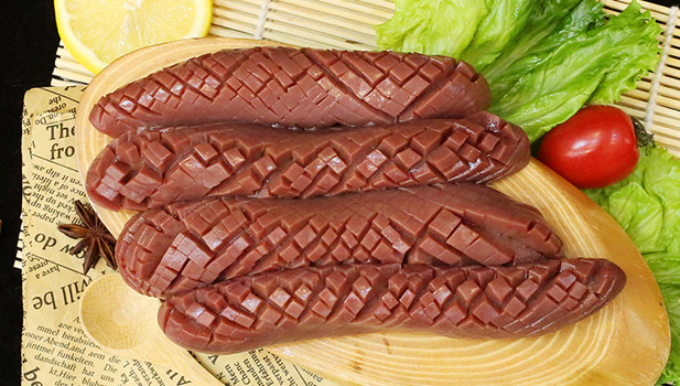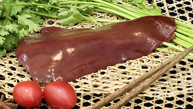 颜色紫红均匀,细腻光滑,烹饪后饱满紧实。富含铁,磷等元素,是理想的补血佳品。