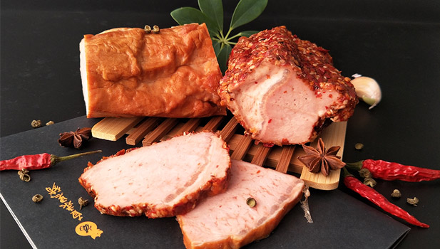 全新工艺和配方制作,黑猪肉经熏烤,细腻醇香,颜色鲜亮有食欲,香辣、五香两种口味。