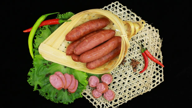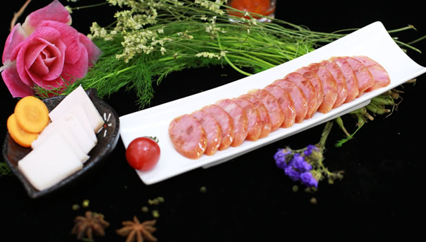 所有肠类产品中的高端,造型略弯,百分百纯瘦肉制作,无香精无淀粉,口感醇香自然。